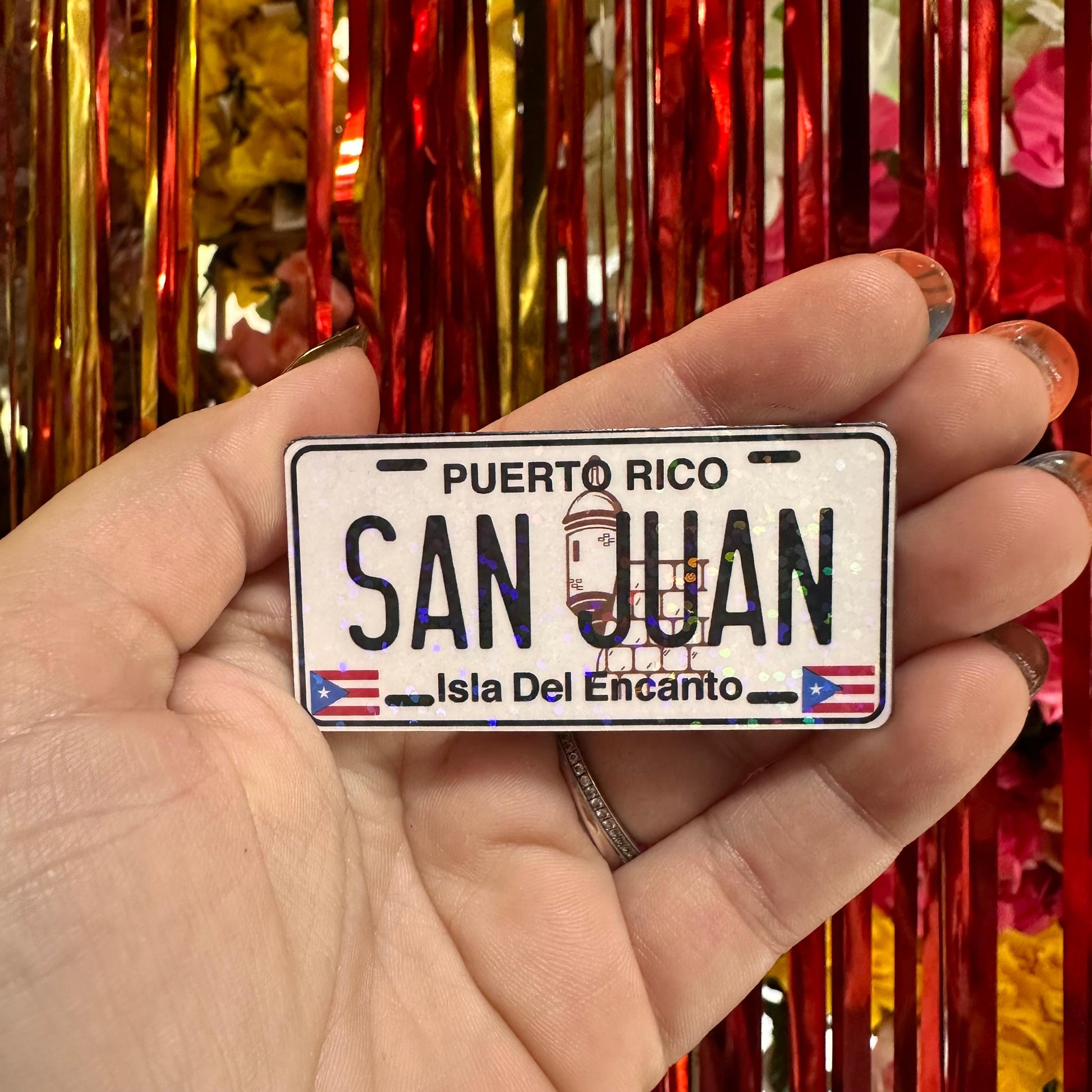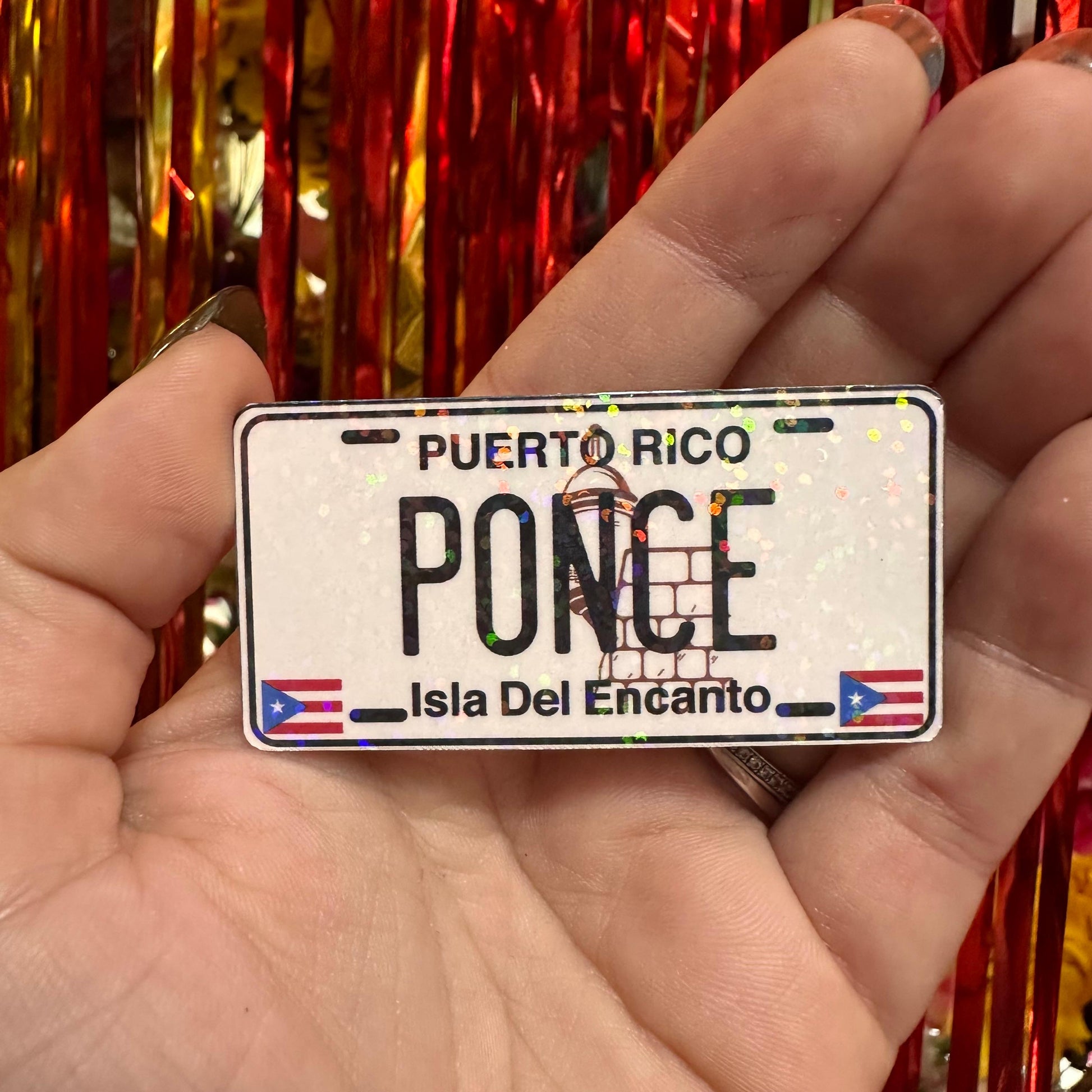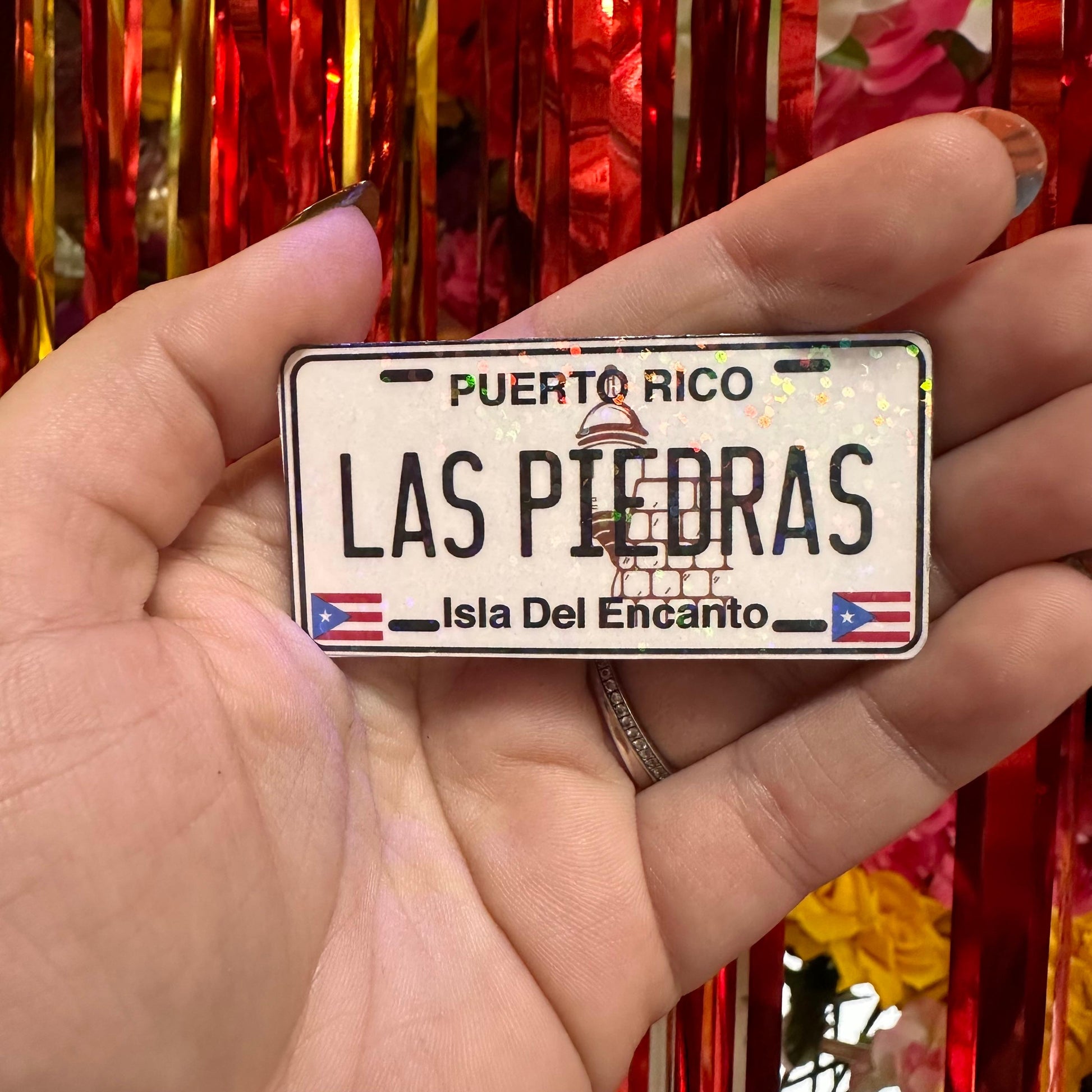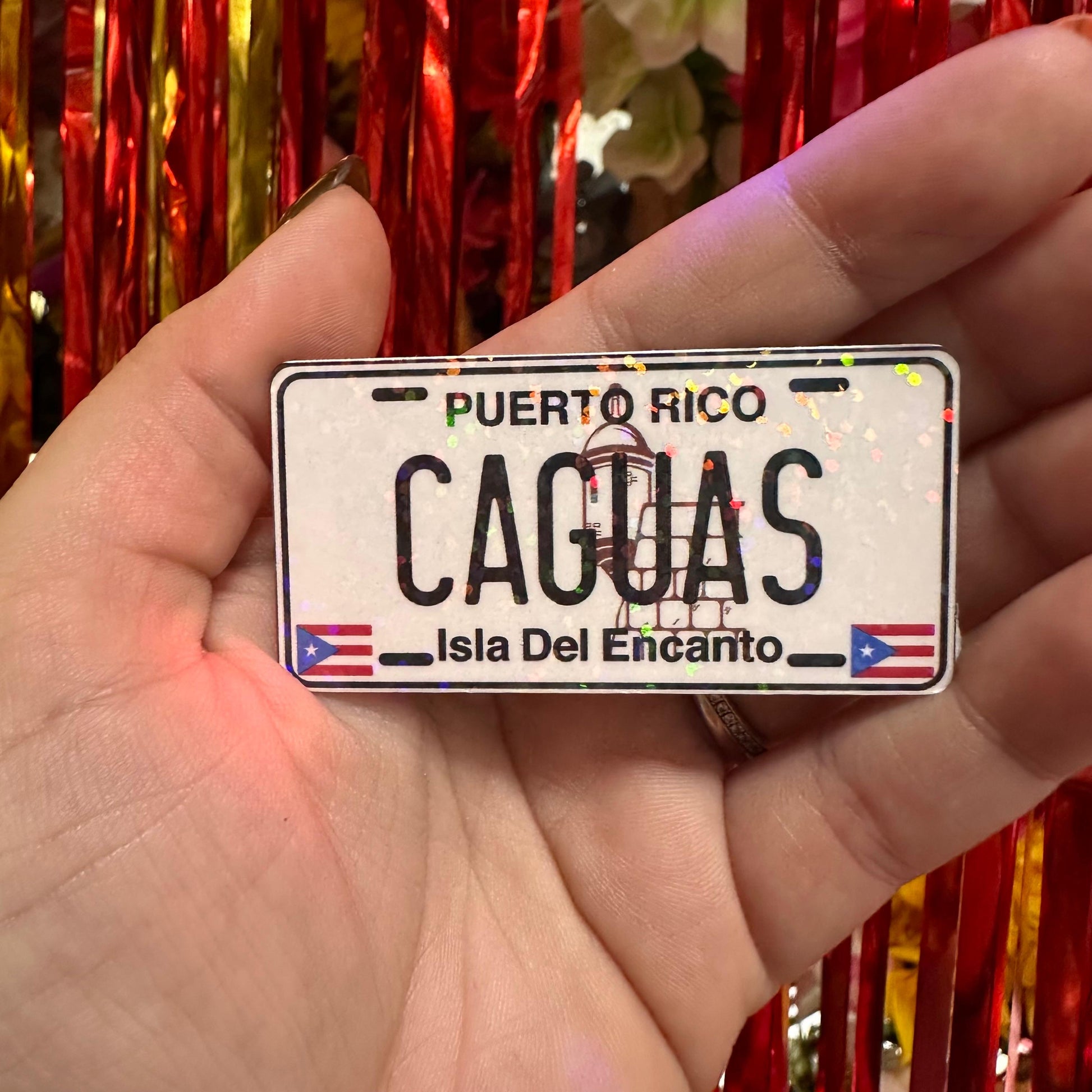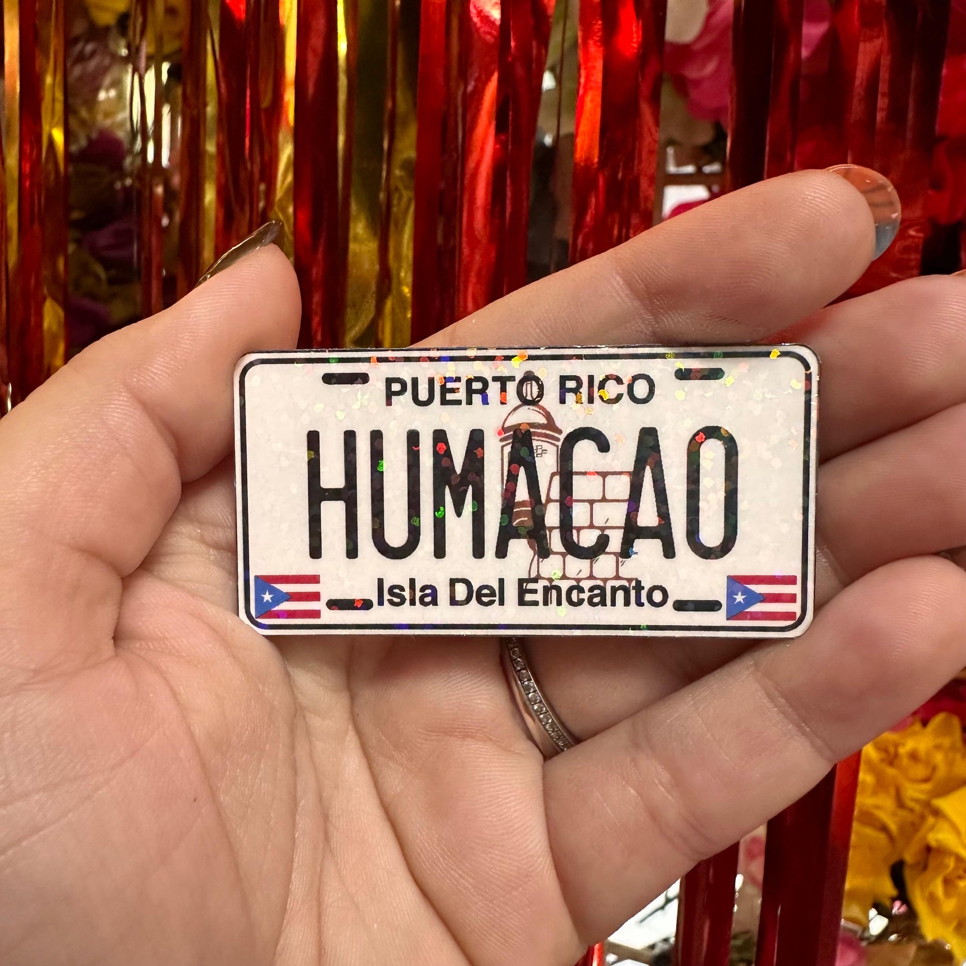 Stickers alusivo a tablilla de Puerto Rico con cada municipio. Medida aproximadamente 2.5” x 1.25”